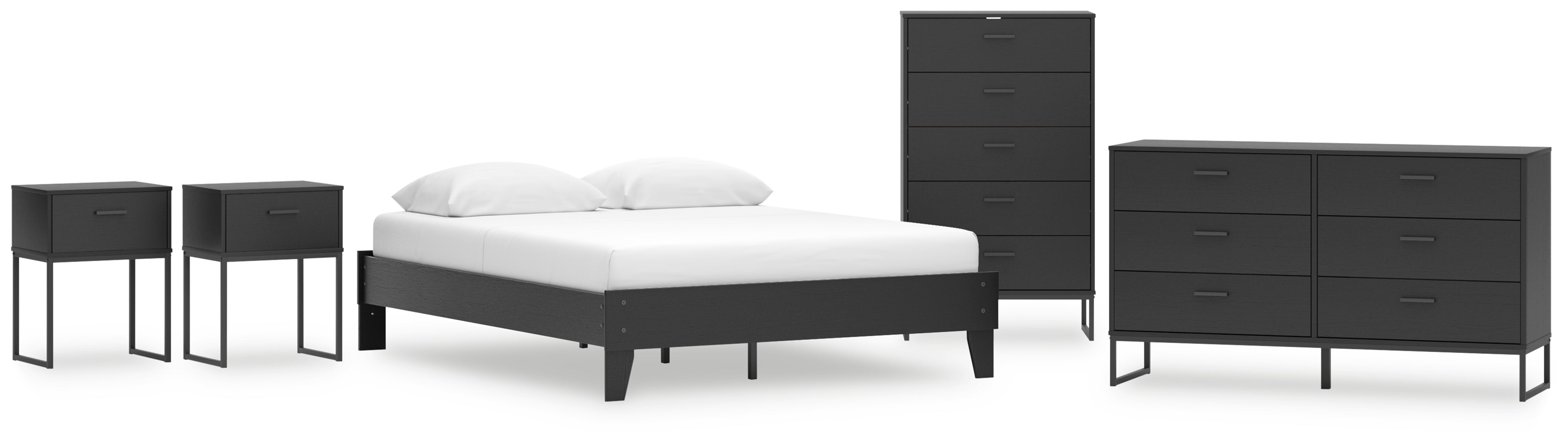 Socalle Queen Platform Bed with Dresser, Chest and 2 Nightstands in Black