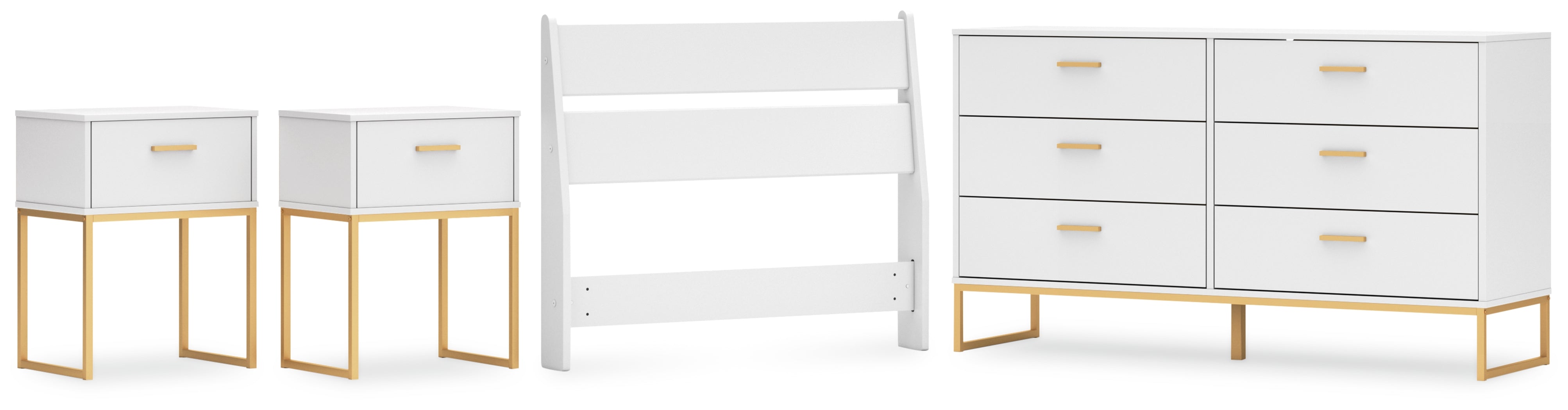 Light and bright, this bedroom package is inspired by chic design. A matte white finish and goldtone accents offer an elegant touch to this so-cool set. It beautifully blends the hues of natural living with the edginess of your modern lifestyle.