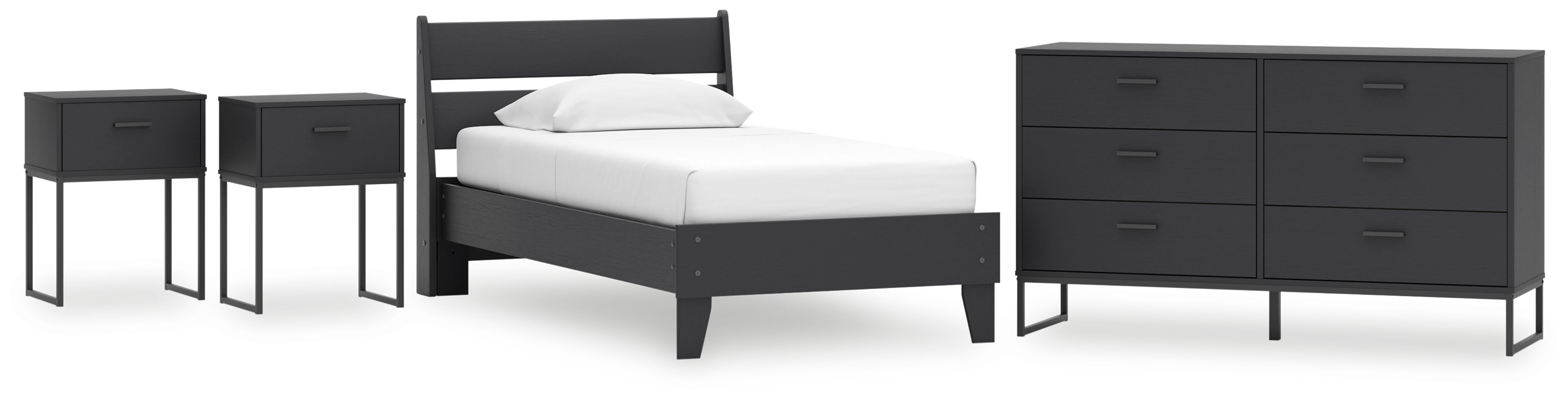 Socalle Twin Panel Platform Bed with Dresser and 2 Nightstands in Black