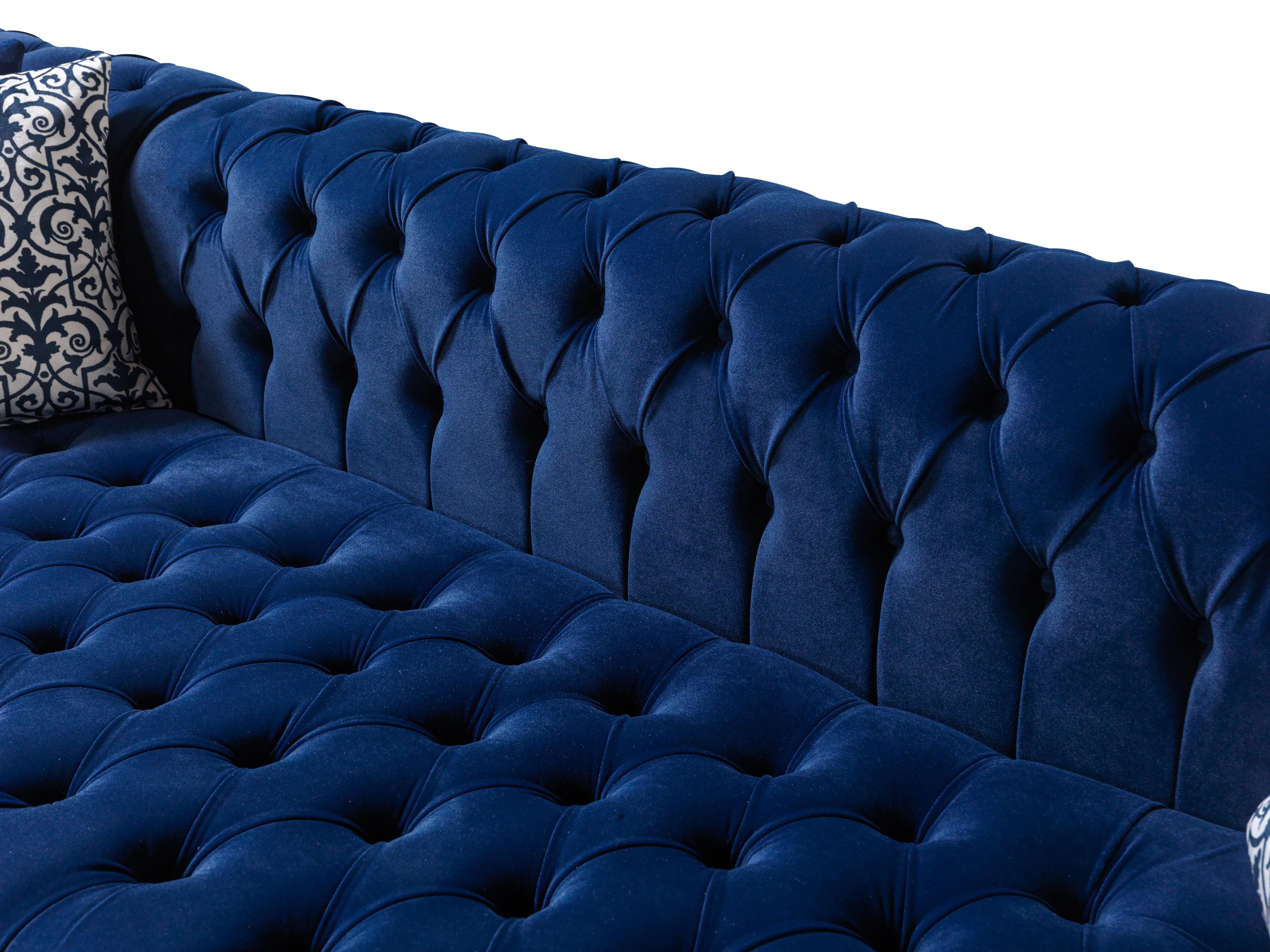 Imagine stepping into your living room after a long day, greeted by the plush embrace and sophisticated charm of the Lauren Blue Velvet Double Chaise Sectional. Its U-shaped silhouette, adorned in luxurious blue velvet, instantly transforms your space into a haven for both relaxation and lavish entertaining. The Lauren sectional’s grand proportions invite family and friends to gather, stretch out, and savor unforgettable moments together—whether it’s a cozy movie night, elegant cocktail hour, or simply unwinding with a book. Its tufted details and rolled arms exude refined glamour, while the tactile softness of velvet offers a sensory treat that delights with every touch. Perfect for modern, upscale, and transitional decors, this sectional seamlessly blends comfort, quality, and visual drama, becoming the centerpiece of any living room, great room, or open-concept space. Luna Furniture introduces Lauren Blue Velvet Double Chaise Sectional to enhance the beauty of your living spaces.