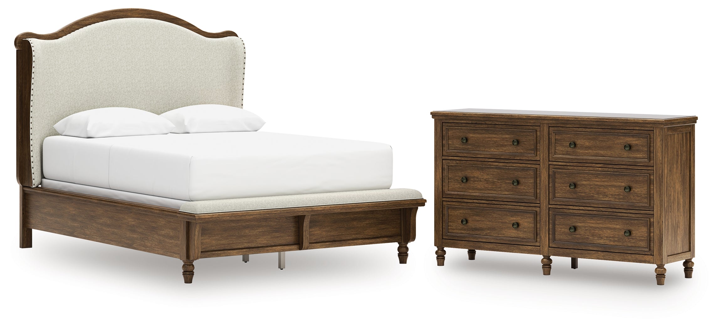 Sturlayne Queen Upholstered Panel Bed with Dresser in Brown