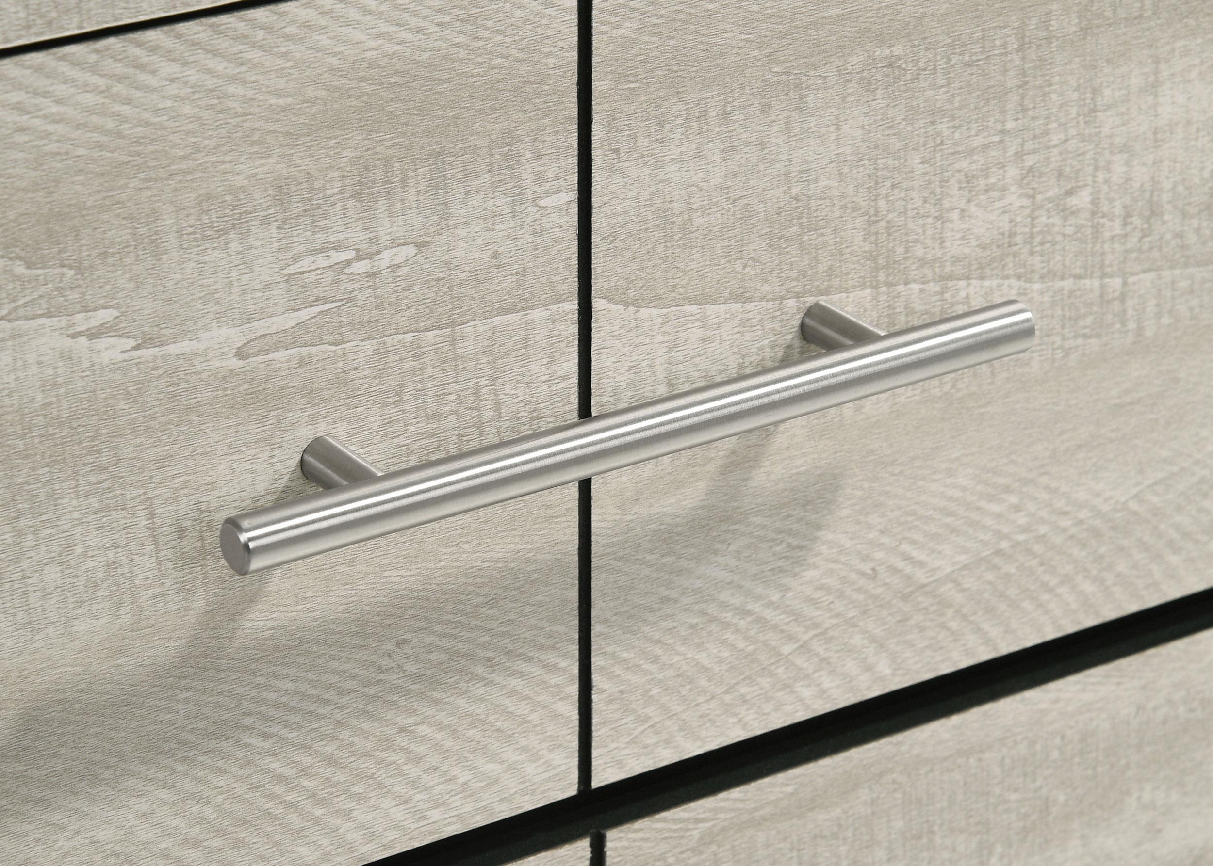 This four-drawer chest offers a stylish combination of rustic charm and modern design, making it a perfect storage solution for contemporary bedrooms. Finished in a rustic cream with rough-sawn, white-washed engineered paper veneer, it has a warm, textured appeal that’s both inviting and chic. The extra-wide polished nickel handles add a sleek, modern touch, creating a subtle contrast. Built with engineered wood, the chest features English dovetail joinery and Kenlin drawer glides for durability and smooth functionality, ensuring it meets both aesthetic and practical needs.