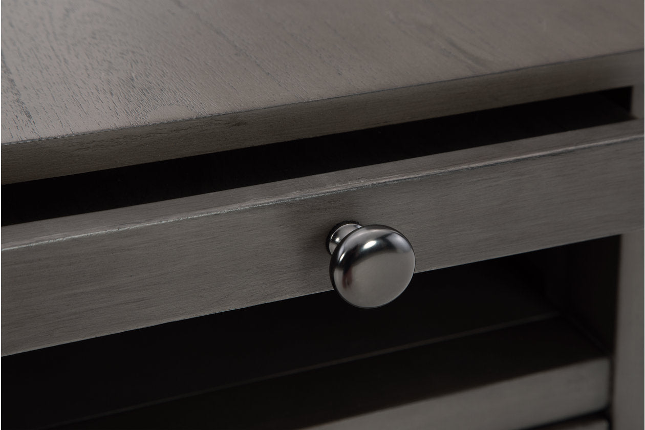 Add big character to a small space with this chairside end table. With its compact size and strong silhouette, it can go anywhere and blend easily into the decor. Less is so much more with the Shaker-inspired design and gray wood tone finish. Loaded with form and function, this end table displays accent pieces and stores essentials securely while keeping devices powered up. — Luna Furniture introduces Treytown Chairside End Table to enhance the beauty of your living spaces.