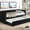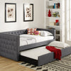 Transform your living space into a versatile haven of sophistication and comfort with the Trina Gray Twin Daybed by Crown Mark. Whether you live in a trendy city apartment or a cozy suburban home, this daybed seamlessly adapts to your lifestyle needs. Imagine inviting friends over for a weekend movie marathon or hosting out-of-town guests—the built-in trundle easily expands your sleeping capacity without sacrificing style. With its blend of transitional and contemporary design elements, the Trina daybed is perfectly suited for modern homes that value both form and function. The rich gray fabric and striking button tufting create an inviting atmosphere, while polished nailhead trim adds a dash of elegance. The clean lines and track arms make it an easy fit for open-concept living rooms, guest suites, or even youth bedrooms. Luna Furniture introduces Trina Gray Twin Daybed to enhance the beauty of your living spaces.