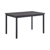 Scaled for your casual dining space, the rustic-industrial look of the Tripp Collection will provide a platform for you to enjoy your mealtime. The silver gray metal legs and apron of the table provide support to the printed faux wood veneer tabletop.