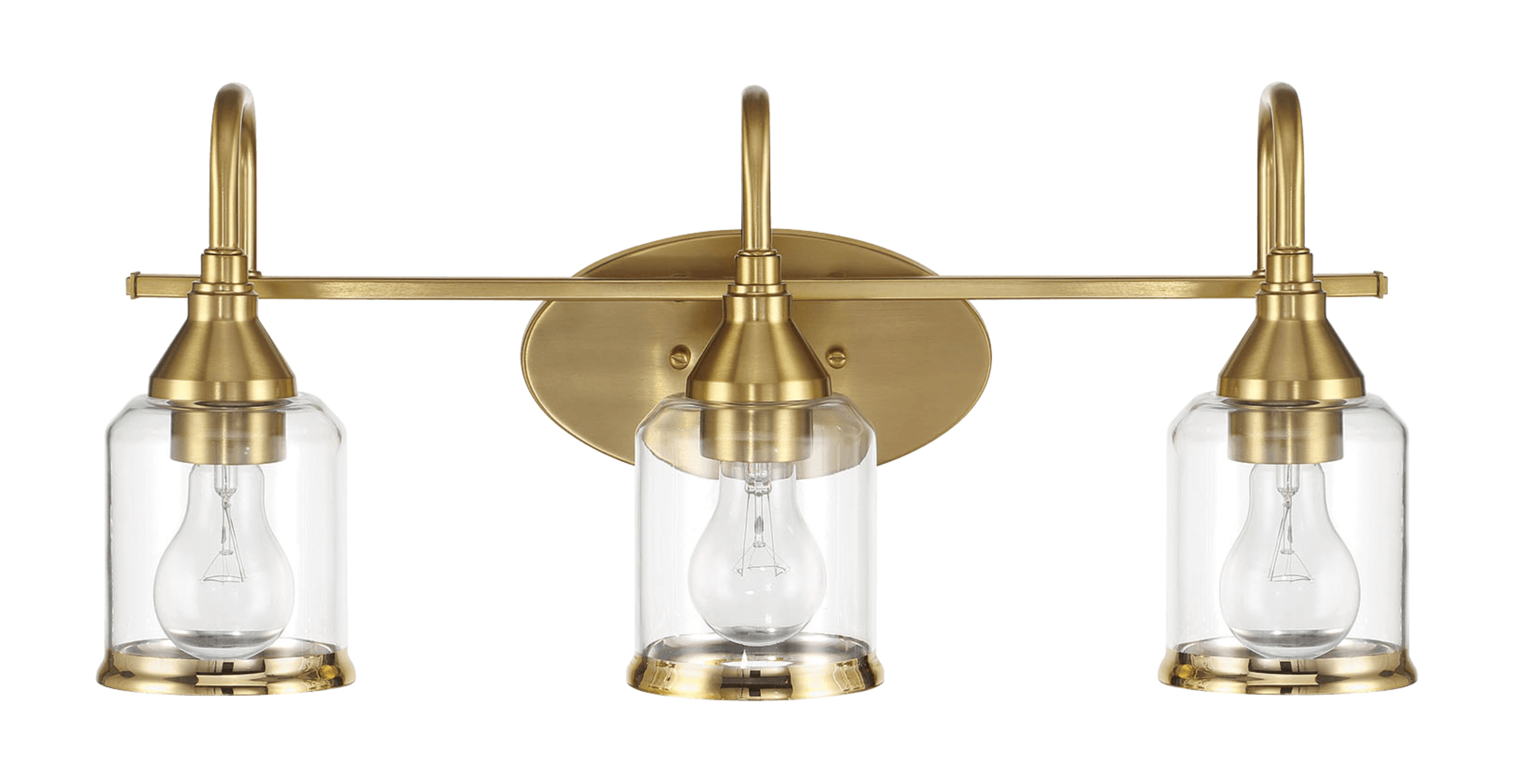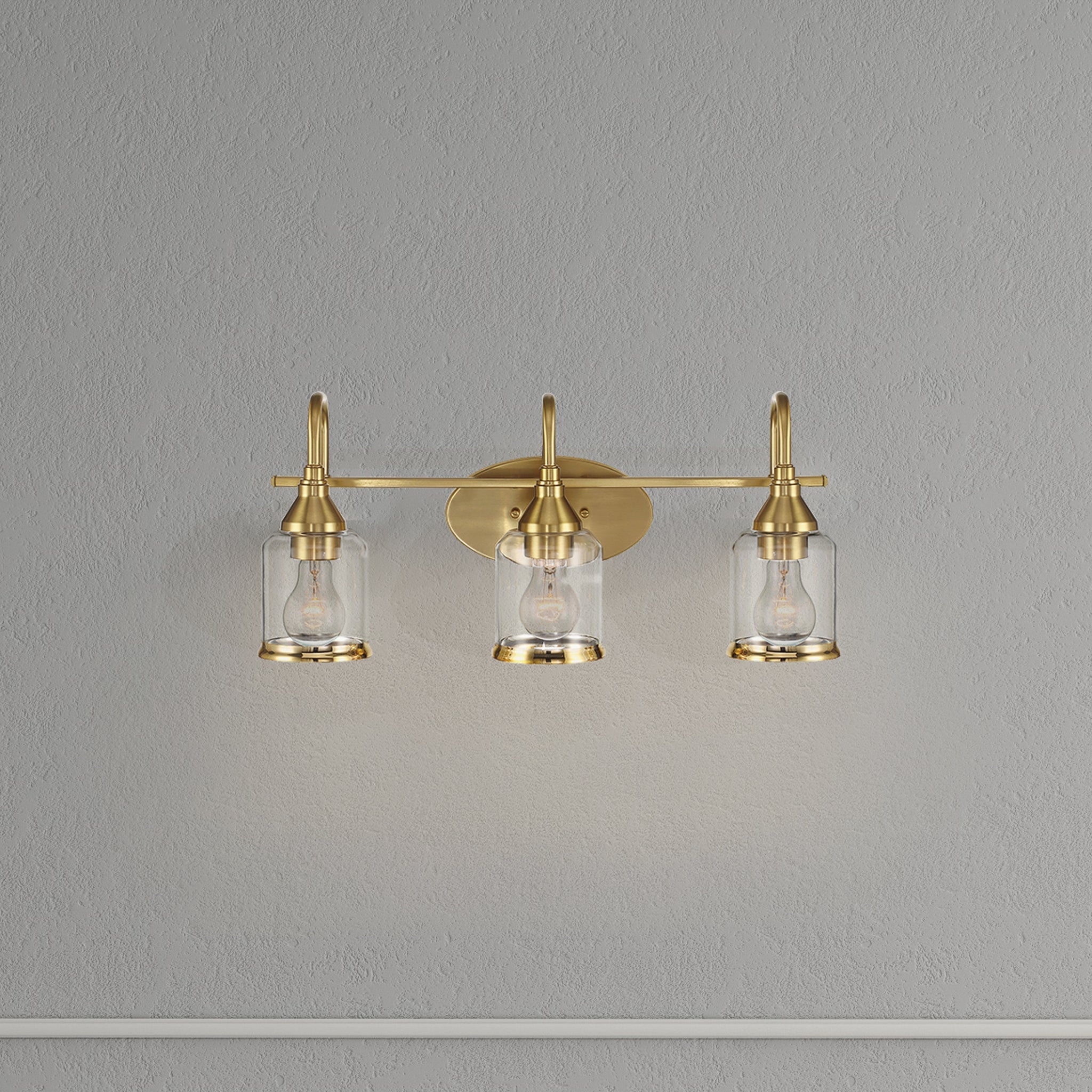 Illuminate your space with the stunning Twilight Three Lights Vanity Light. Featuring a contemporary design with a brushed gold finish and clear glass shades, this 22"W × 10"H × 7.48"E light will add a touch of elegance and sophistication to any room. Experience both style and functionality with this beautiful and versatile piece. Elevate your space with the radiant beauty of the Twilight Three Lights Vanity Light. With its modern silhouette, luxurious brushed gold finish, and delicate clear glass shades, this exquisite 22"W × 10"H × 7.48"E light is the perfect blend of elegance and functionality. Transform any room into a sophisticated oasis with this stunning and versatile piece.