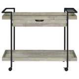 Ventura Gray Driftwood 2-Tier Bar Cart with Storage Drawer