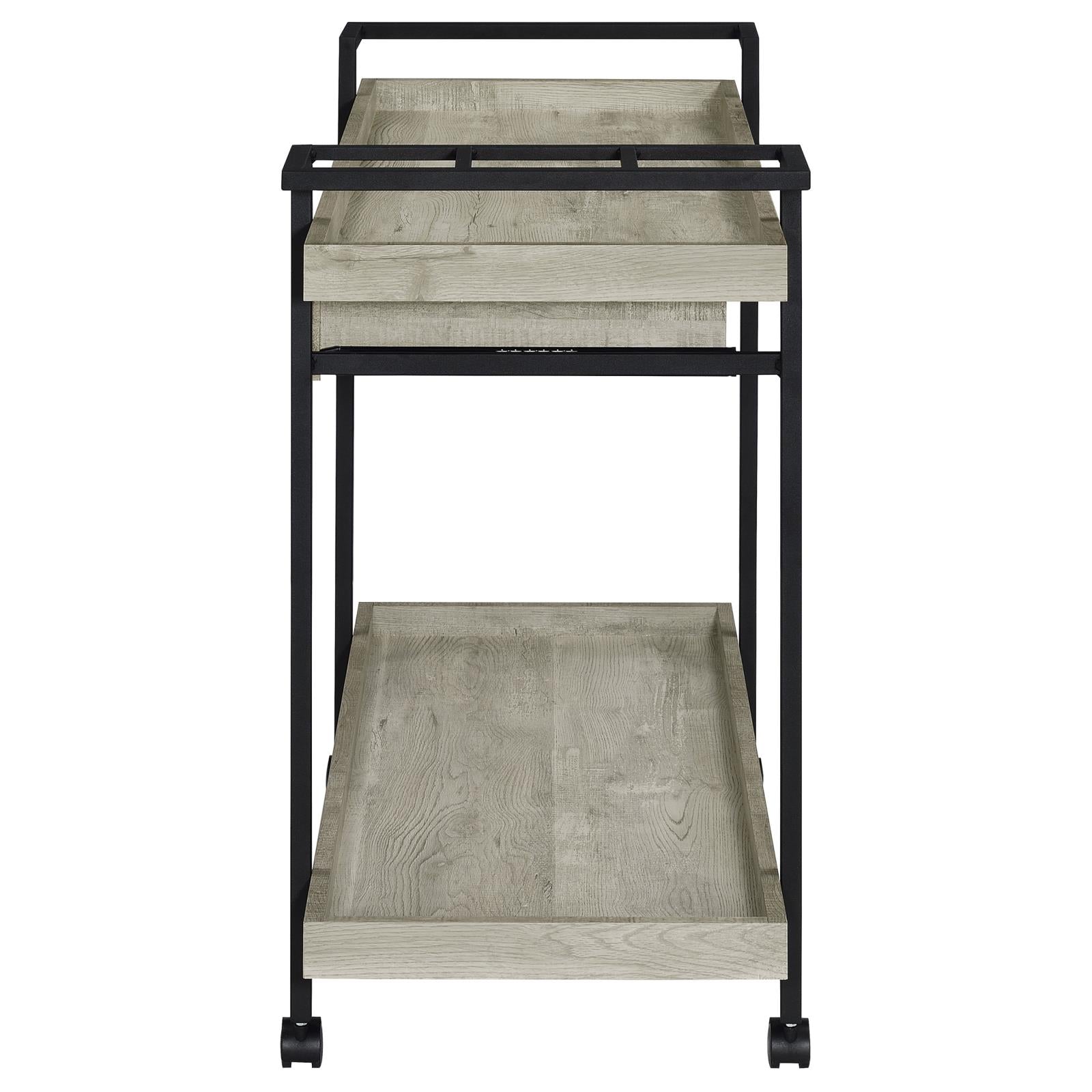 Ventura Gray Driftwood 2-Tier Bar Cart with Storage Drawer