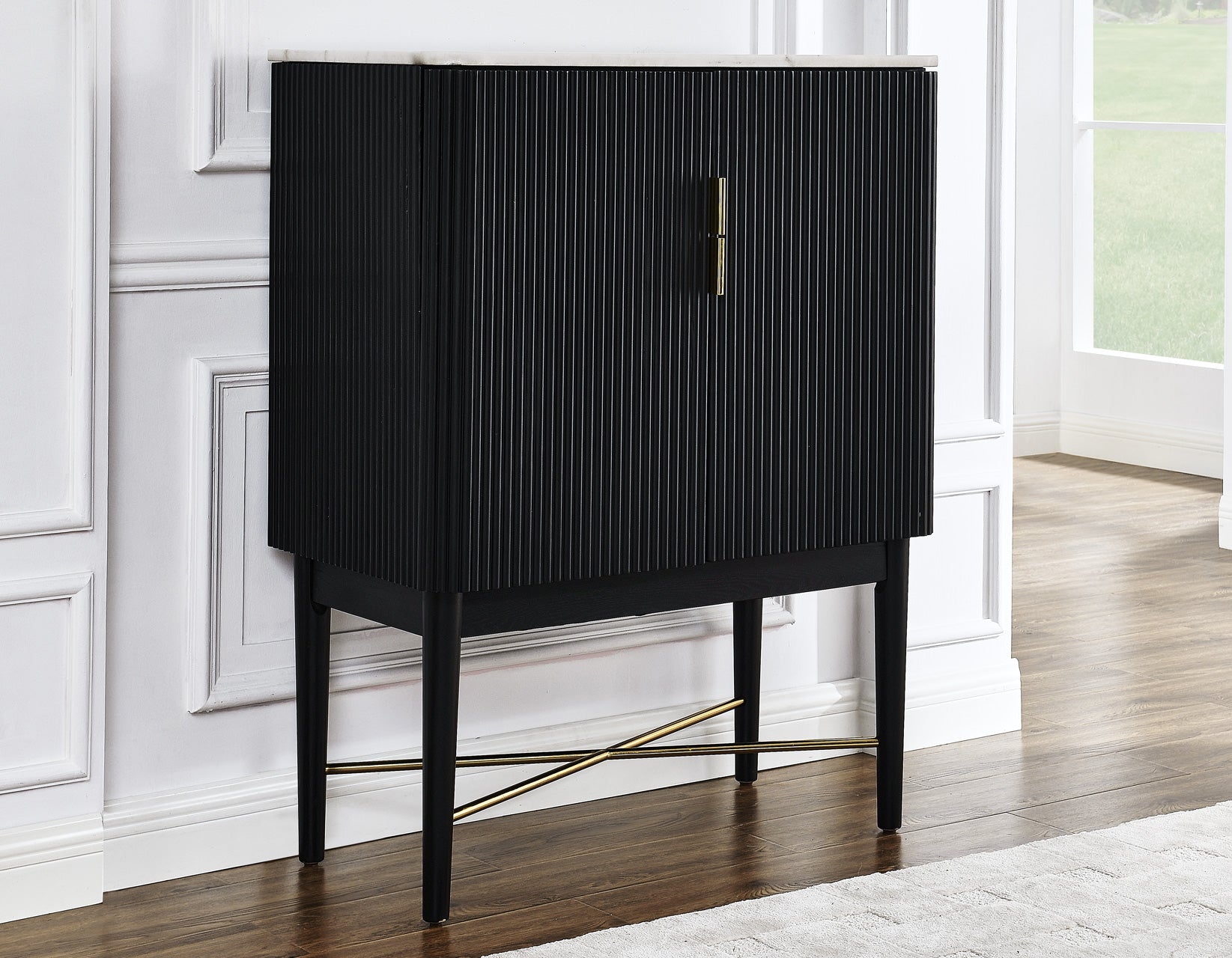 Experience the essence of minimalism, functionality, and beauty with the Vida 6-Piece Marble Dining Set, blending sleek mid-century modern and Scandinavian styles. The set features a stunning 72-inch marble top table, supported by canted black solid hardwood legs for a look of elegant simplicity. Included are four sand-colored vegan leather side chairs and a 49-inch bench, offering plenty of comfortable seating for guests with their gently shaped seats. An optional server with soft-touch doors and clean chevron pattern fronts extends the set, adding a contemporary touch to its sophisticated design.