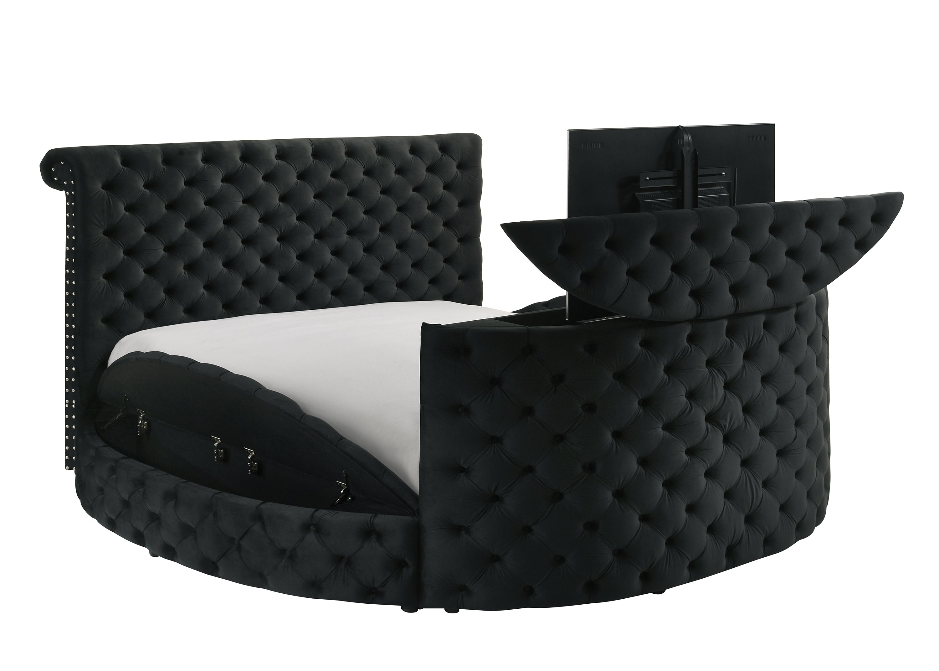 Voltare Black Queen Upholstered Fireplace Bed with TV Lift | 5212BK