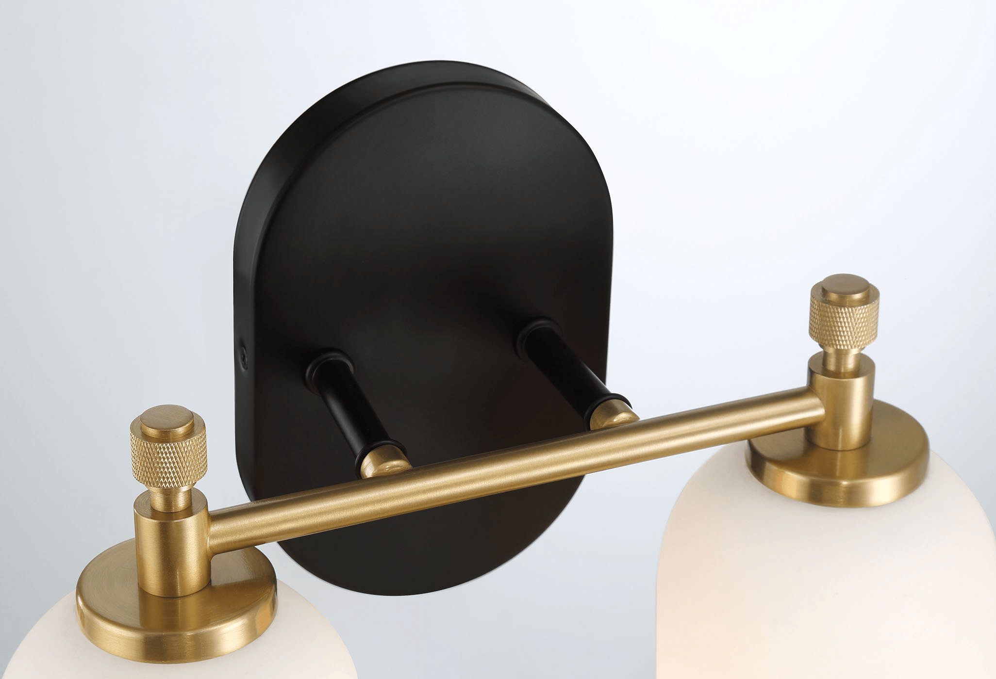Illuminate your bathroom with elegance and style with the Vortex Two Lights Vanity. This beautiful wall sconce features a traditional design and two lights, providing bright and even lighting over your bathroom mirror. The white frosted glass adds a touch of sophistication and completes the look of your bathroom. Upgrade your bathroom with this stunning addition! Transform your bathroom into an elegant and stylish sanctuary with the Vortex Two Lights Vanity. Designed with timeless tradition in mind, this wall sconce boasts two lights for a beautifully bright and evenly lit bathroom mirror. The white frosted glass adds a touch of sophistication, elevating your bathroom's overall look. Give your bathroom the upgrade it deserves with this stunning addition!