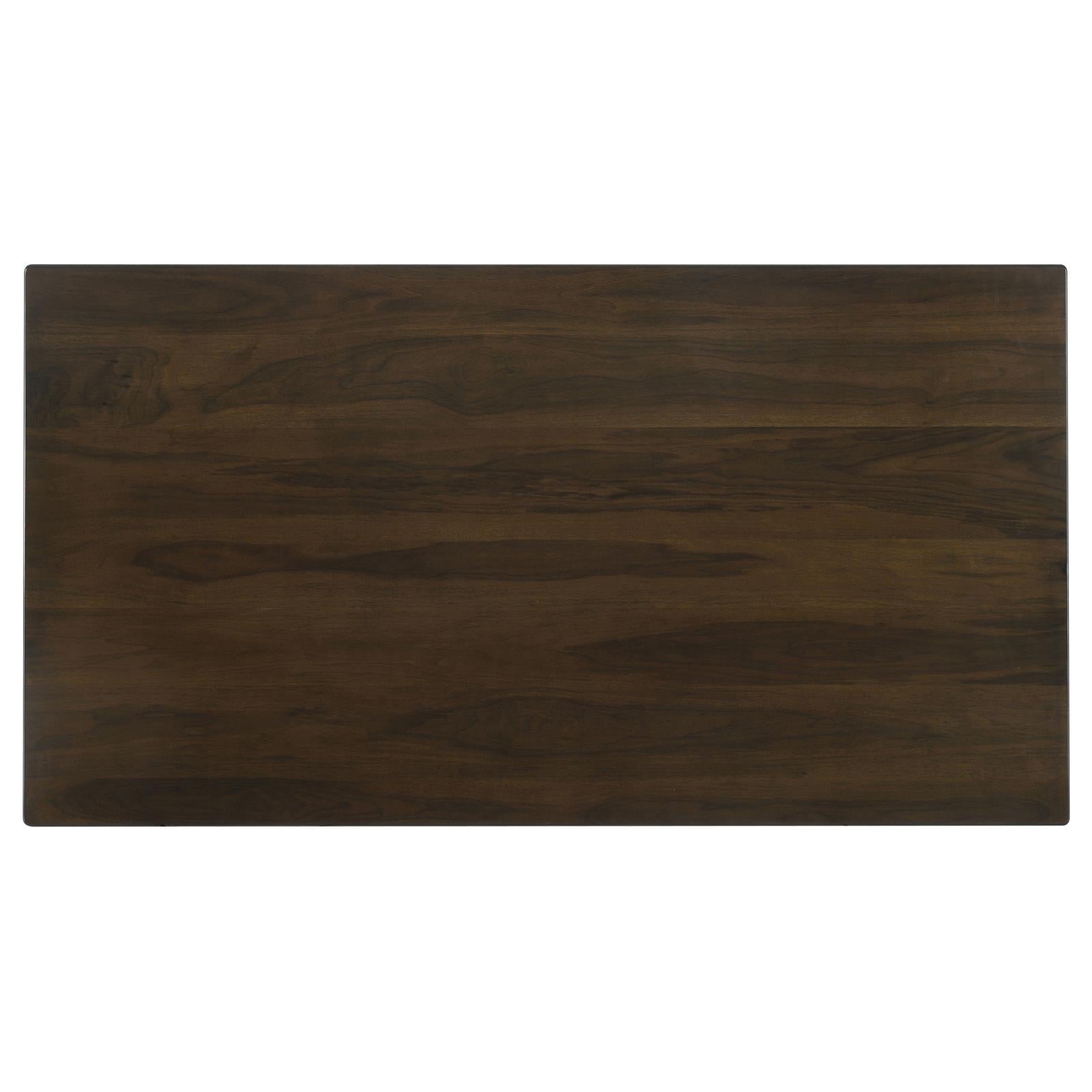Perfect for your mid-century modern dining space, this beautiful and spacious dining table brings a retro expression. A spacious rectangular table top with a bullnose edge and a fluted apron beneath offers plenty of room for six family members and guests. Beneath the table are vintage-like tapered legs that flare outward in a bold, dramatic way. Throughout the entire table, a rich, dark walnut finish elevates it into an elegant and contemporary aesthetic. Place this wonderfully sleek and stylish dining table in both casual and formal dining rooms.