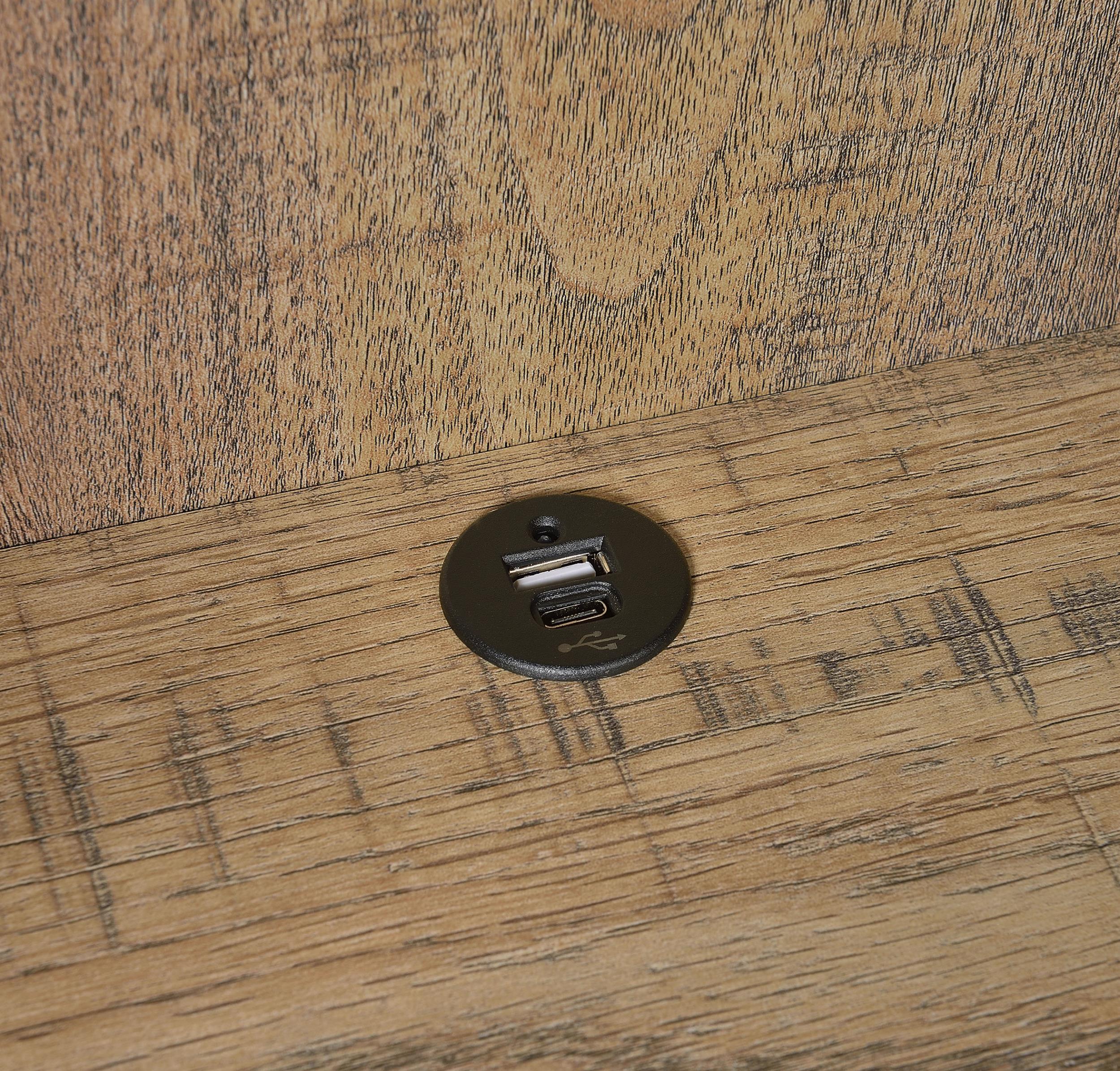 Enhance your home organization with this multifunctional bookcase, featuring a wood-inspired finish. Equipped with three open shelves and two drawers, it offers a mix of display and hidden storage options. The top drawer includes a secure locking mechanism for valuables, while an integrated dual USB charging outlet with USB-A and USB-C ports provides convenient power for phones and devices. Crafted from engineered wood with a scratch-resistant laminate veneer, this bookcase combines durability and modern functionality.