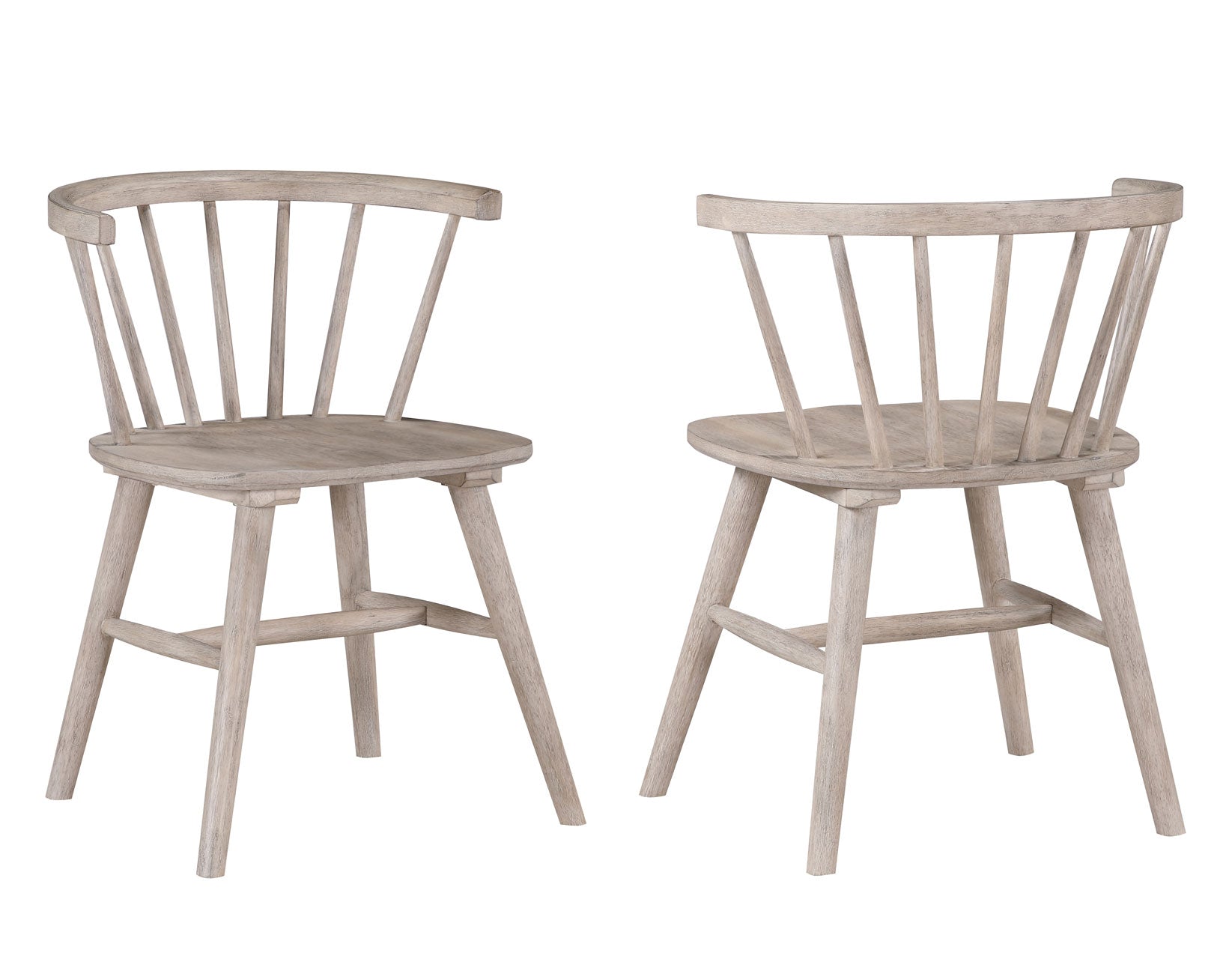 A beautiful addition to any smaller dining area, Willow exudes a modern farmhouse punch in a compact design. The 42-inch round table comfortably seats four, boasting sleek lines and a modern tan finish crafted from oak veneers with solid wood legs. Paired with the accompanying side chairs, which offer a modern twist on the classic Windsor design, this ensemble effortlessly bridges the gap between modern and farmhouse aesthetics. Versatile and stylish, Willow is the perfect choice for any modern or farmhouse environment.