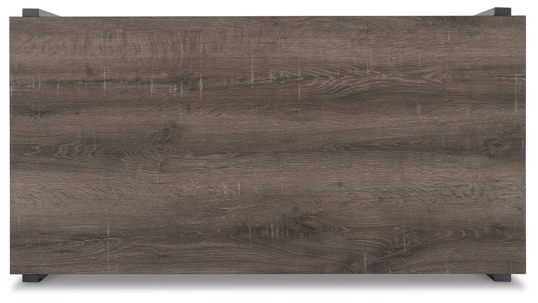 - Laminate features a replicated wood grain with a weathered gray coloration
