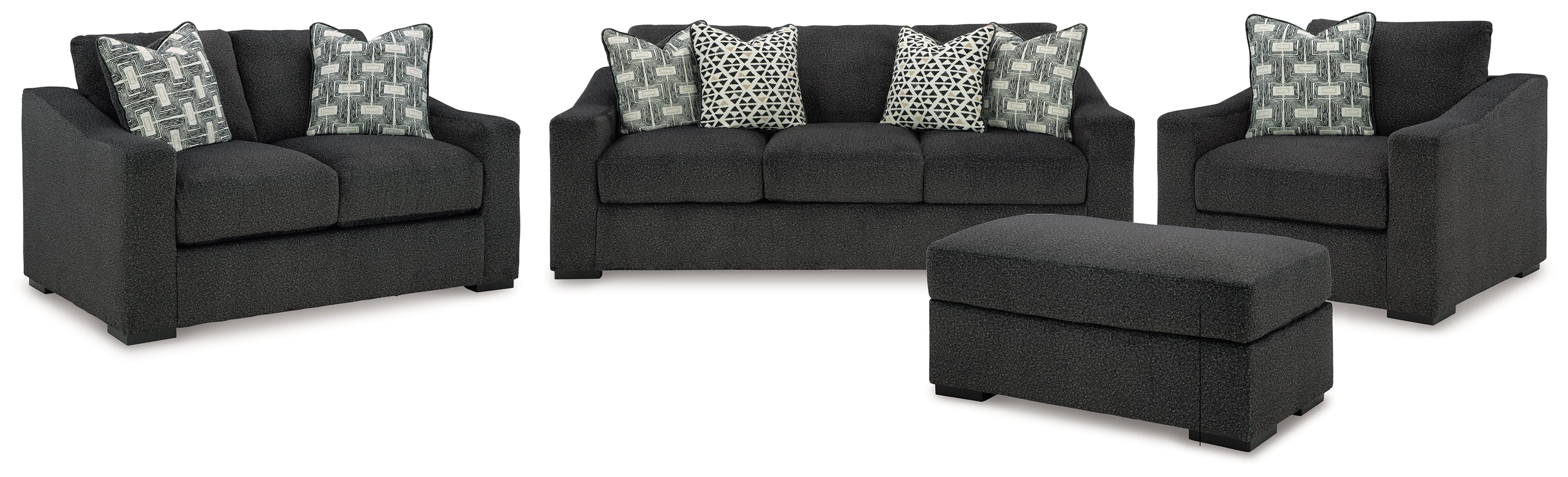 Wryenlynn Sofa, Loveseat, Chair and Ottoman in Onyx