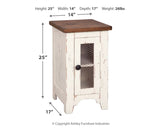 Double take. Sporting a two-tone finish that pairs a distressed vintage white with aged natural pine color, this 2-piece chairside end table set elevates the art of rustic farmhouse living. Enhancing its charm: shelved storage visible through the cabinet door with inset metal grill.