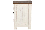 Double take. Sporting a two-tone finish that pairs a distressed vintage white with aged natural pine color, this chairside end table elevates the art of rustic farmhouse living. Enhancing its charm: shelved storage visible through the cabinet door with inset metal grill. — Luna Furniture introduces Wystfield Chairside End Table to enhance the beauty of your living spaces.