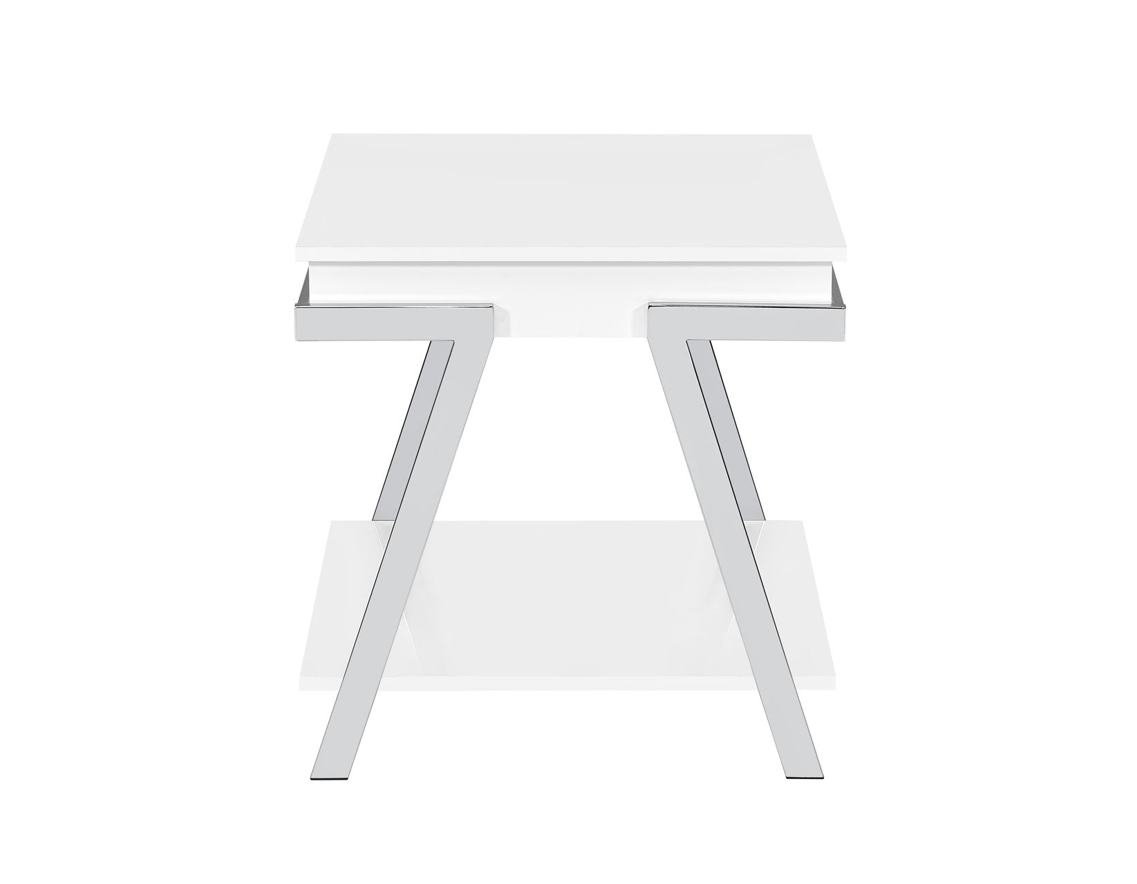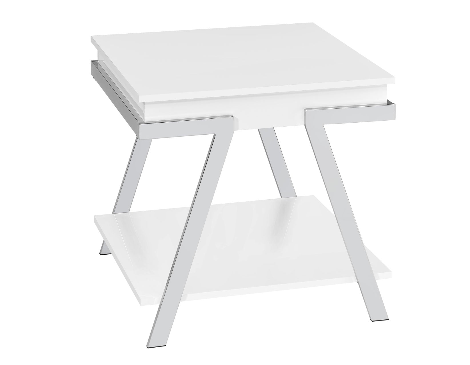 Midcentury modern design meets glam styling in the Zena End Table. Canted chrome legs frame the white finished wood center in a neutral but not boring complement to any decor. The perfect side table companion to your favorite chair, this versatile table also can be used between upholstery or as a glam nightstand. Modern and sophisticated, Zena is a great accent for any room.