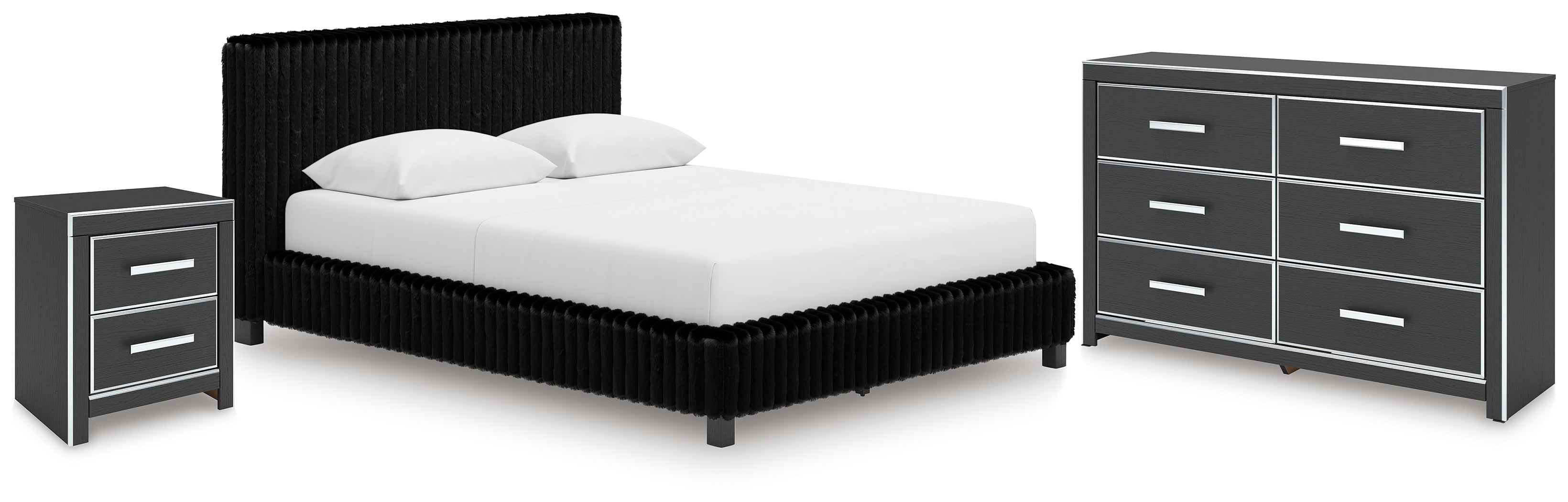 Zuraleus Black Queen Upholstered Bed, Dresser and Nightstand